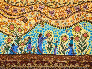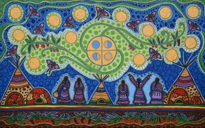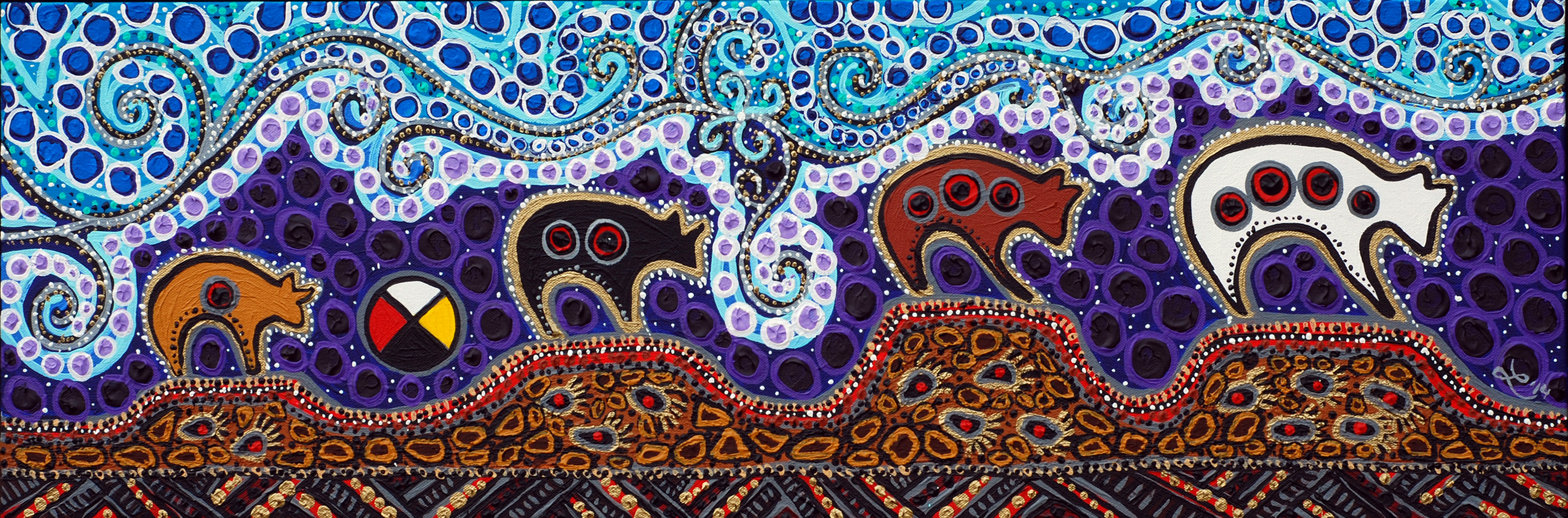 Leah’s artistic process celebrates the sacred connections between women and Mother Earth. Influenced by the traditional Indigenous teachings, she hopes her art educates as well as inspires.